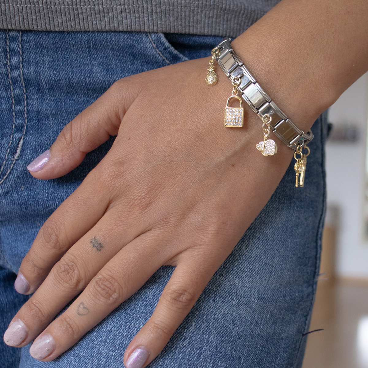 Detalles luminosos que elevan tu pulsera con un toque de elegancia y luz.